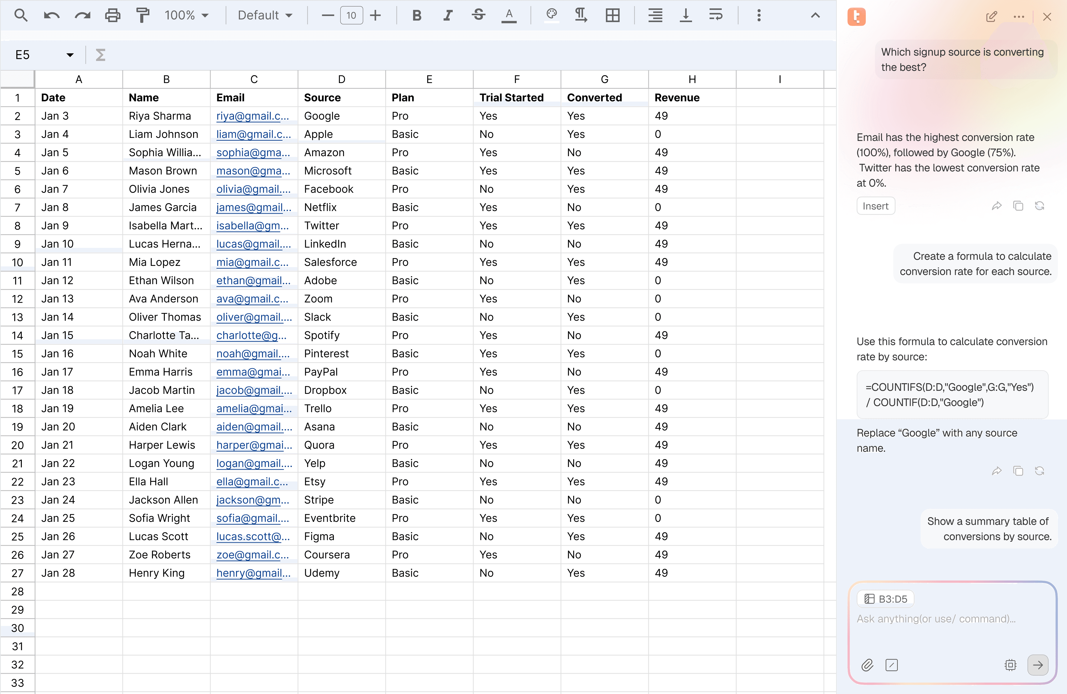 Summarise this spreadsheet in three key insights